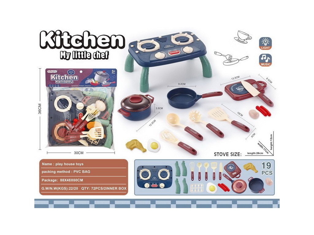 Tento kuchyňský set je skvělým doplňkem pro dětskou kuchyň. Součástí setu jsou různé druhy nádobí a hrnce, které napodobují skutečné kuchyňské potřeby. Děti se mohou naučit základy vaření a rozvinout svou představivost.