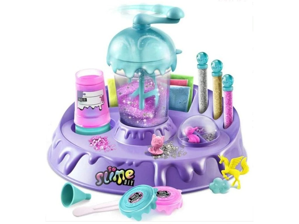 Obsahuje různobarevný prášek na výrobu slizu, třpytky, figurky, barvičky a další potřebné vybavení k výrobě slizu.
