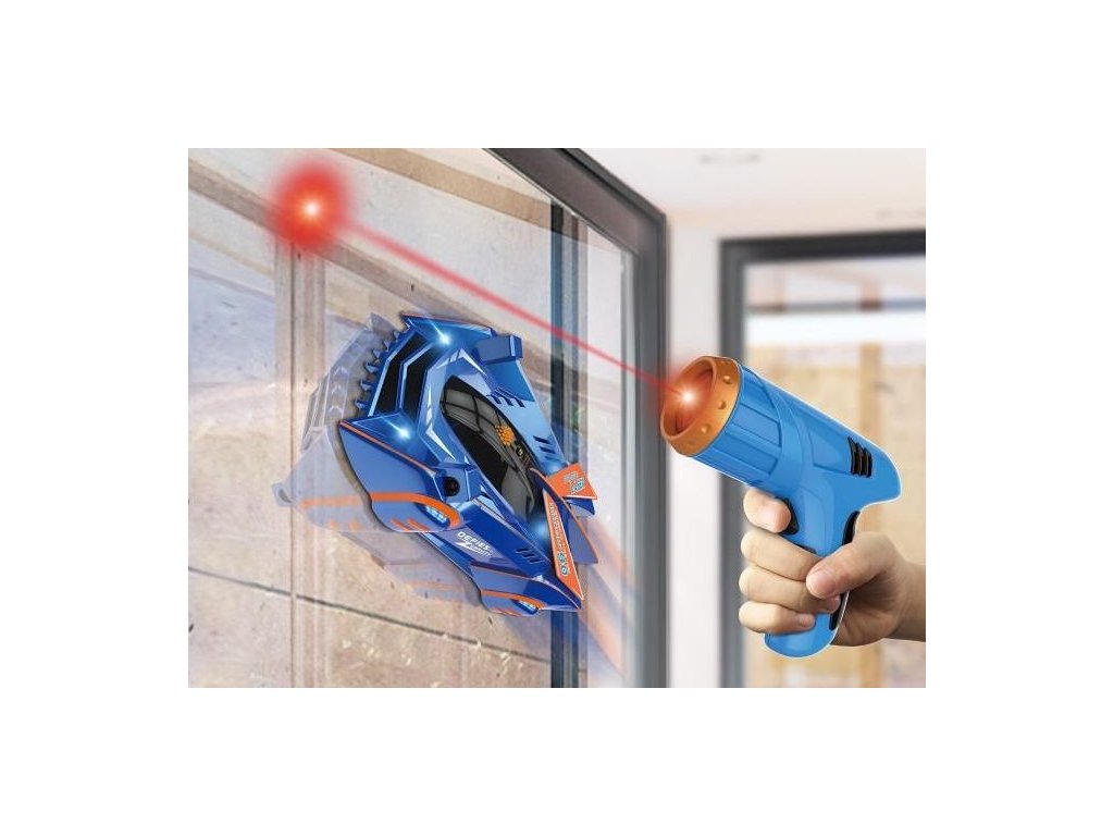 Autíčko pronásleduje laser a dokáže jezdit po stěnách i po stropě.