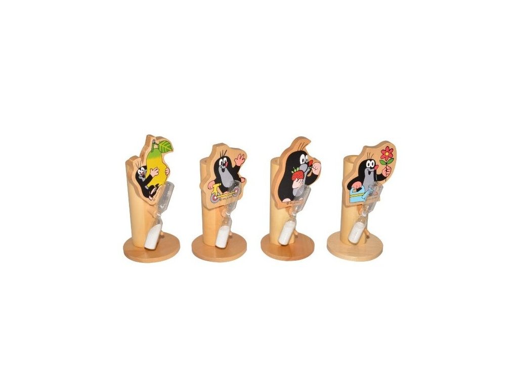 Dětský dřevěný stojánek na zubní kartáček s motivem Krtečka a jeho přátel. S tímto krásným stojánkem se pro děti stane čištění zoubků zábavou. Na stojánku jsou připevněny přesýpací hodiny.