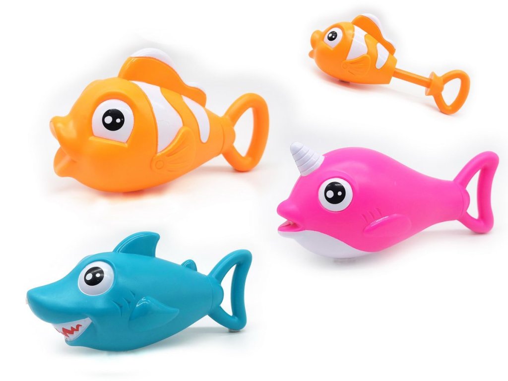 Vodní puška stříkací ryba. 3 varianty - modrá, oranžová, růžová.