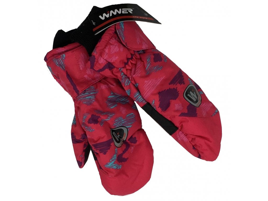 WINNER Zimní dětské rukavice palčáky TM.RŮŽOVÉ vzor, vel. M