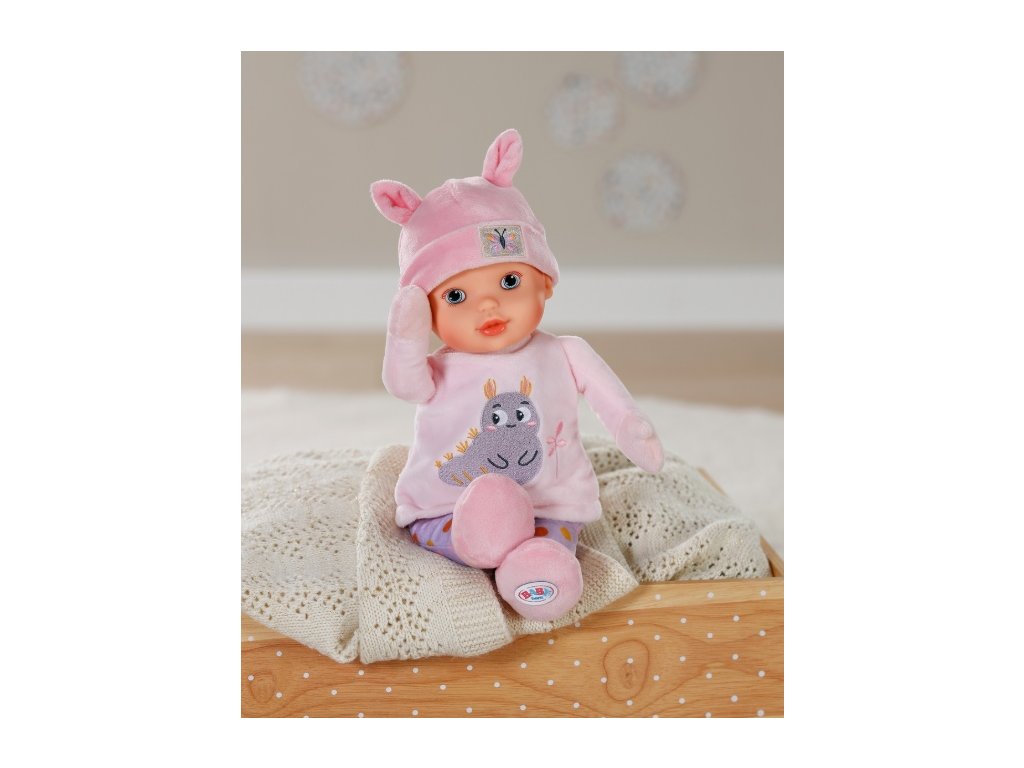 BABY born for babies Miláček růžový s integrovaným chrastítkem. Velikost panenky je 30 cm. Panenka má pozitivní vliv na rozvoj dítěte a podporuje jeho emociální vývoj a představivost.