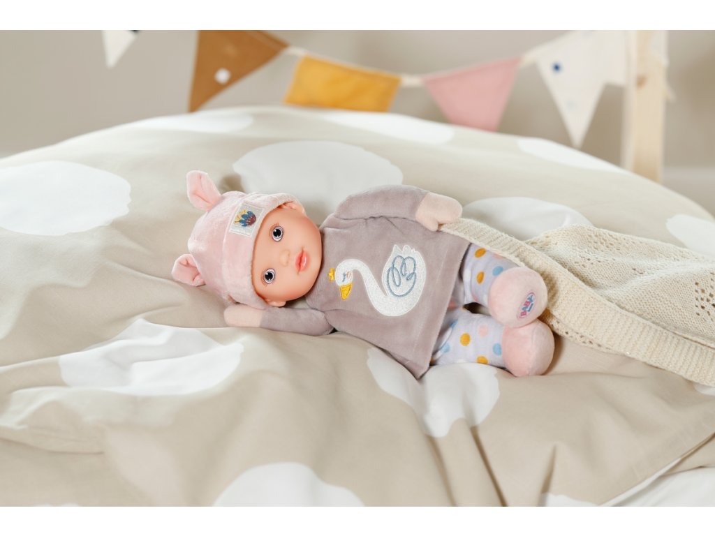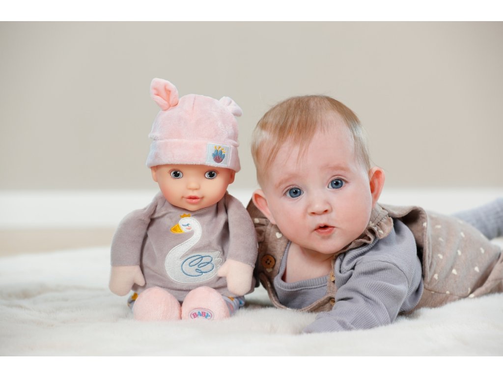 BABY born for babies Miláček s labutí s integrovaným chrastítkem. Velikost panenky je 30 cm. Panenka má pozitivní vliv na rozvoj dítěte a podporuje jeho emociální vývoj a představivost.