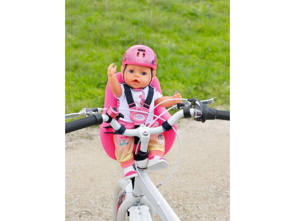 BABY born se nyní může projet i na kole. Jednoduše připevněte sedačku ke kolu pomocí systému pásků, posaďte BABY born do sedačky, připoutejte ji a můžete vyrazit!