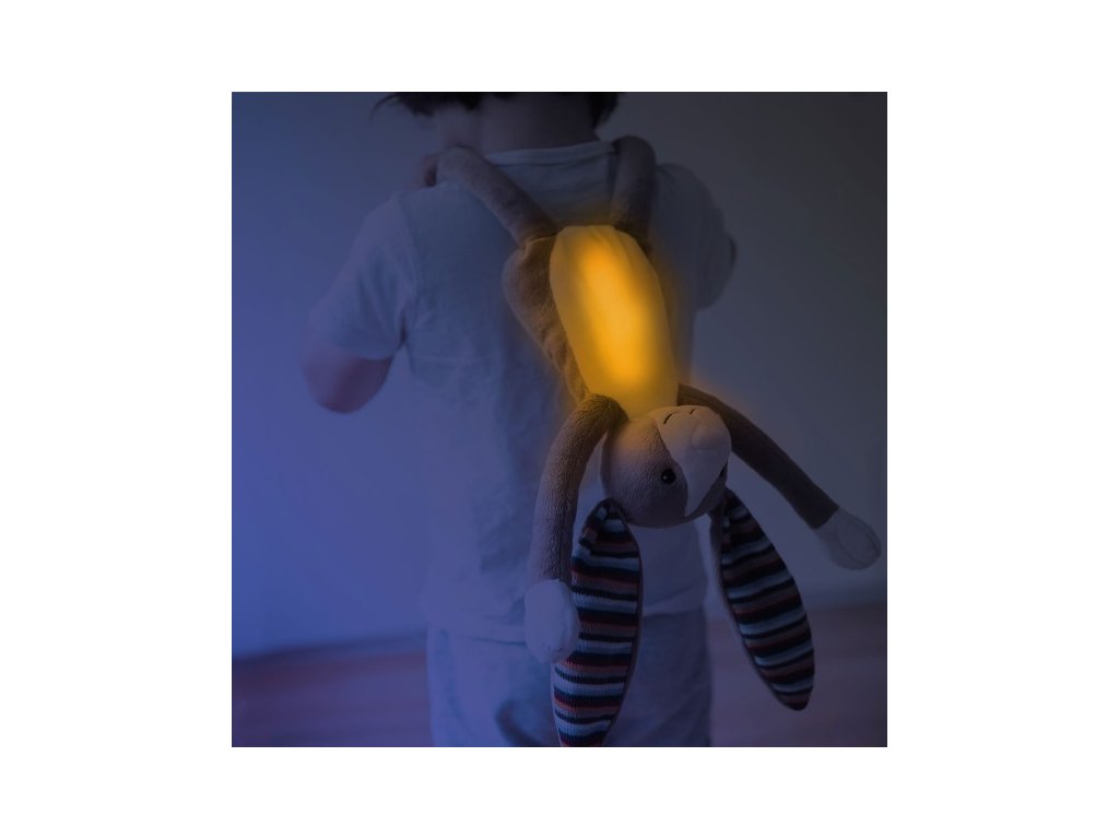 Plyšové zvířátko má v bříšku odnímatelný světelný modul, který v noci poskytuje jemné zářící světlo. Jednoduše se aktivuje stisknutím bříška zvířátka.