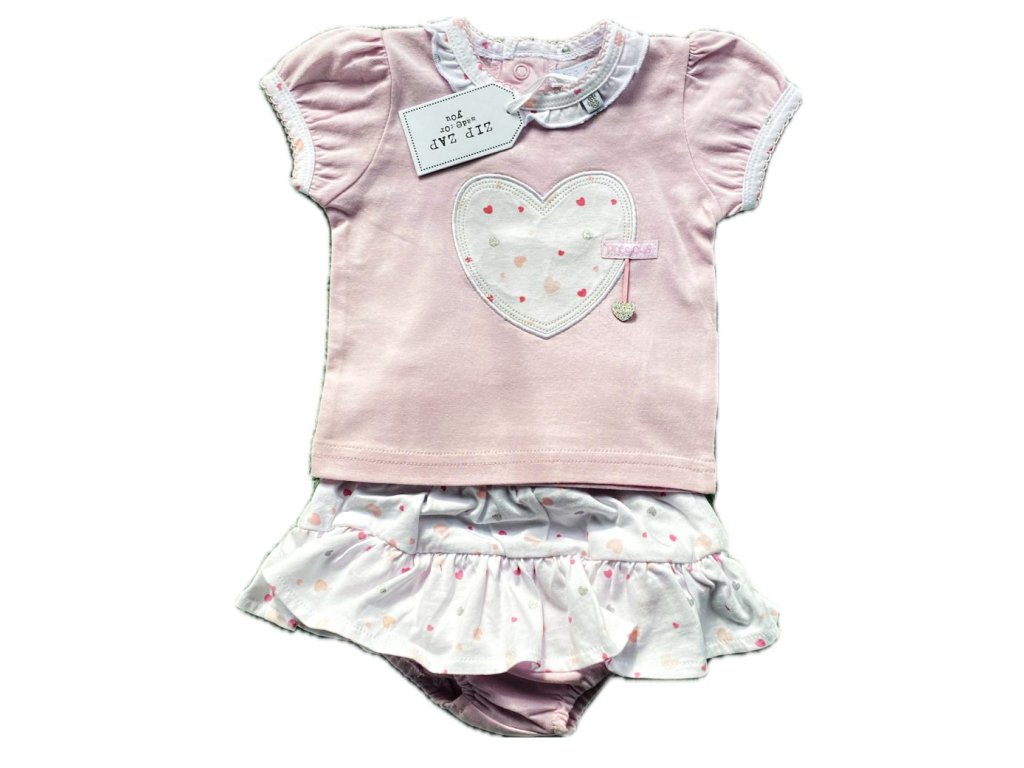 ZIP ZAP Letní souprava triko růžové SRDCE + sukýnka s kalhotky vel. 62cm (3m)