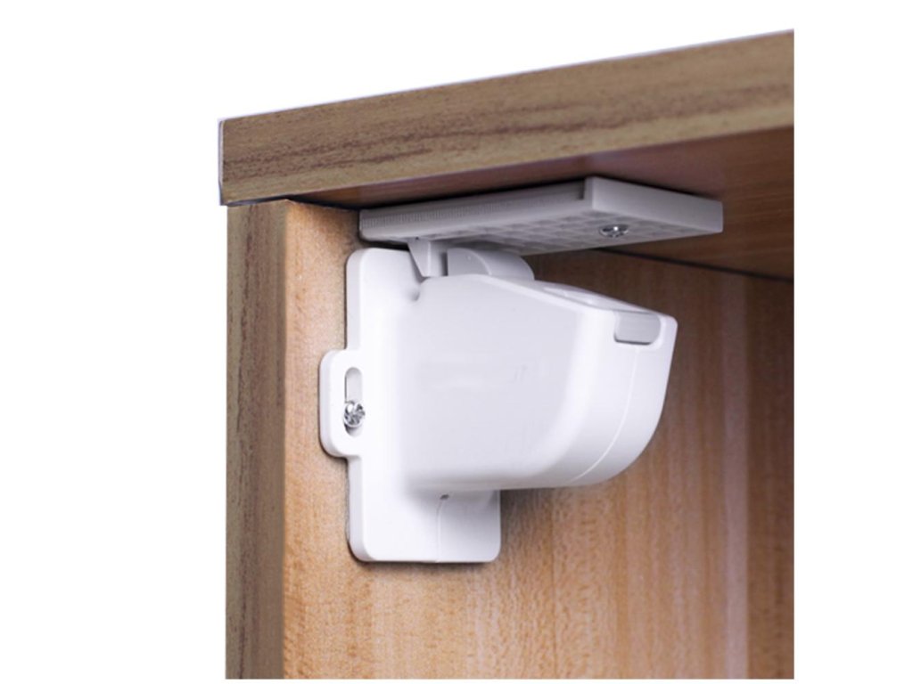 Magnetický uzávěr disponuje také praktickou pojistkou. Pokud skříňku používáte v kuse, například v kuchyni při vaření, pojistkou si uzávěr na čas vypnete a zprovozníte ji opět v situaci, kdy skříňku potřebujete mít netknutou a zabezpečenou před dětmi.