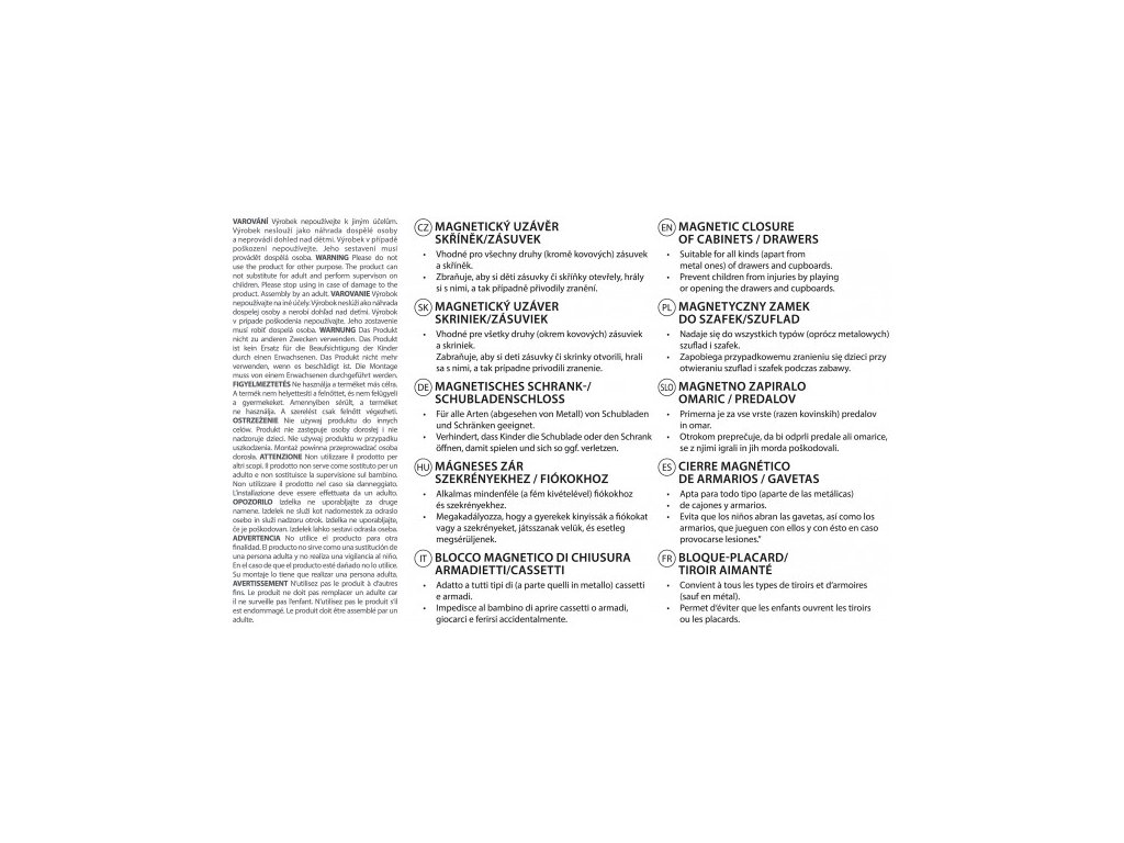 • Magnetický uzávěr je určen pro všechny druhy zásuvek a skříněk, kromě kovových