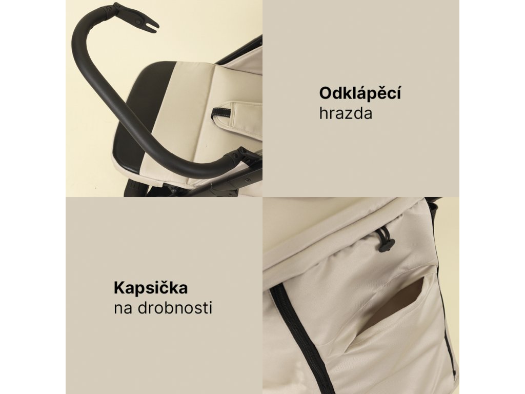 Zopa Moya myslí i na detaily – kapsička na drobnosti, odklápěcí hrazda pro snadný přístup k dítěti, ventilace v zadní části kočárku pro lepší proudění vzduchu. Při skládání nezabírá téměř žádné místo a snadno se vejde i do menšího kufru auta.