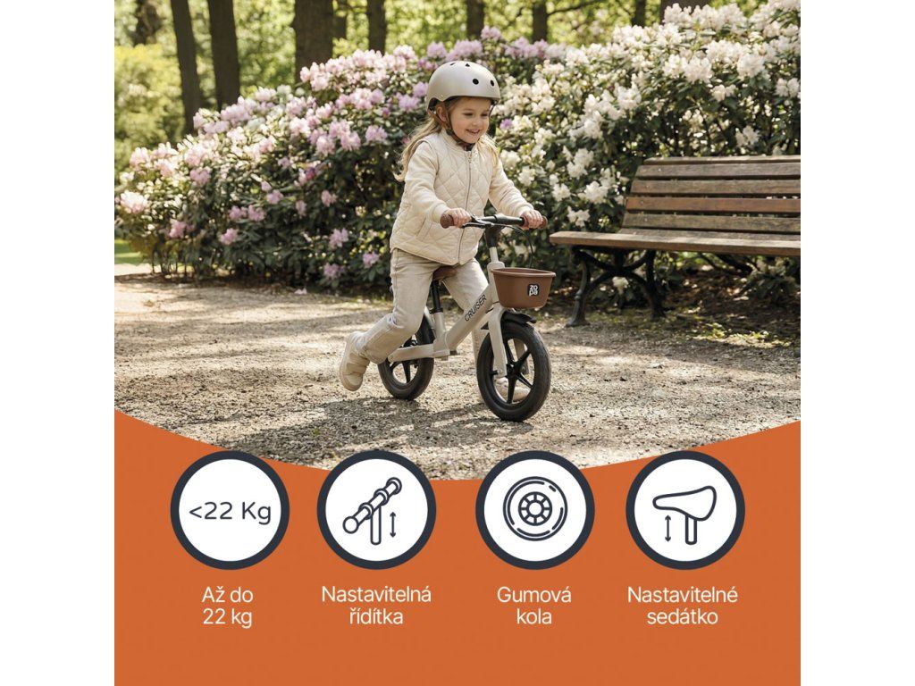 Stylové odrážedlo Cruiser je ideální volbou pro malé dobrodruhy, kteří se učí rovnováze a jistotě při jízdě. Díky integrované brzdě nabízí vyšší bezpečnost a lepší kontrolu rychlosti, což pomáhá dítěti budovat sebevědomí.