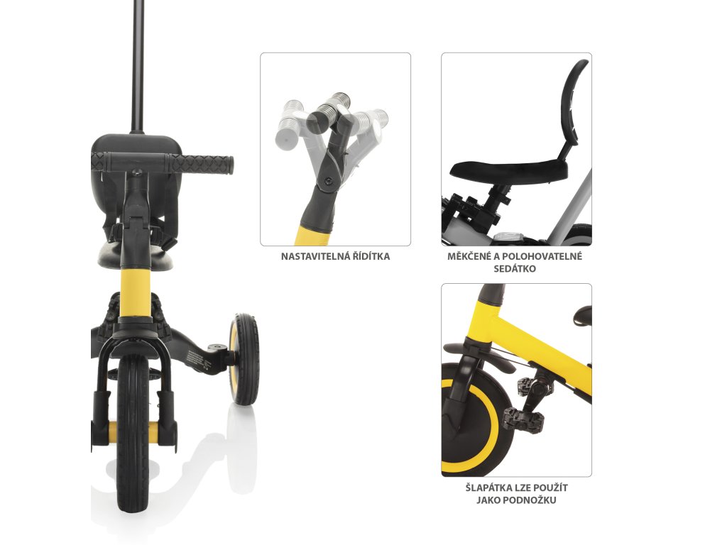 Děti si vybudují vztah ke všemu, co je provází od brzkého dětství. Dopřejte jim dlouhá léta s jedním kolem, které je bude provázet již od 1,5 roku jako tříkolka až do věku 5 let jako kolo. Tříkolka má možnost volby používání s vodicí tyčí či bez vodící tyče. Variantu s vodící tyčí oceníte na delších výletech, když dítěti dojdou síly samostatně šlapat.