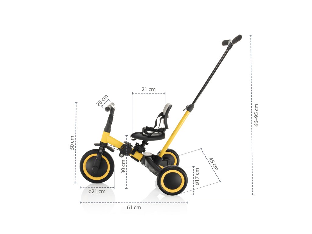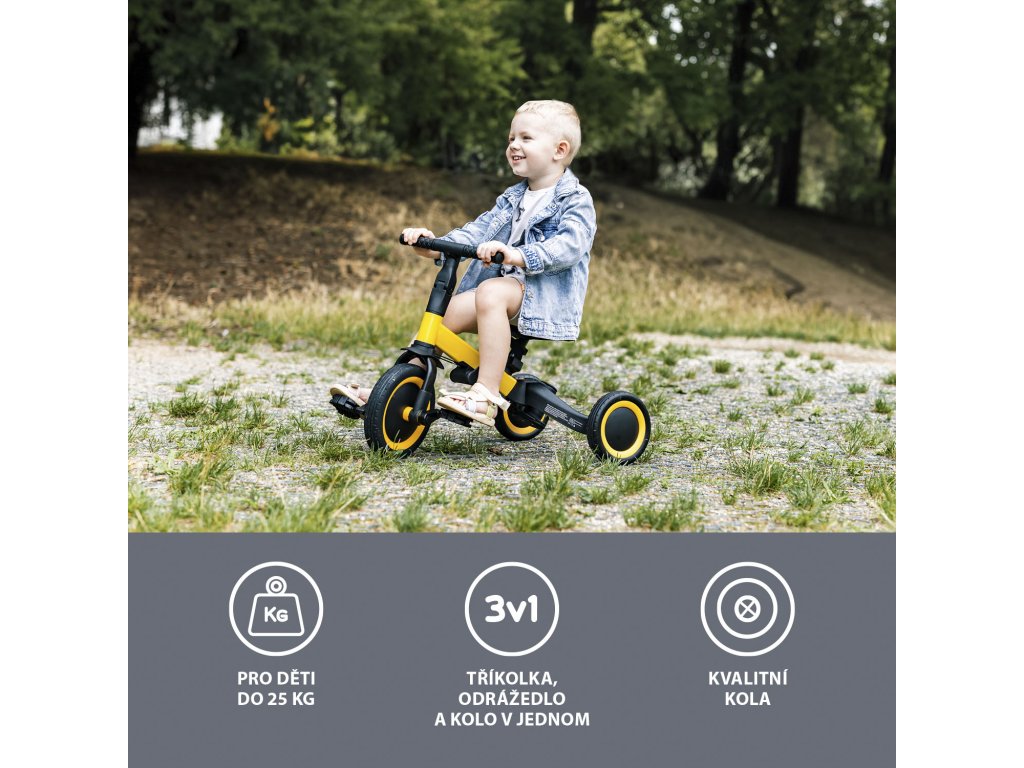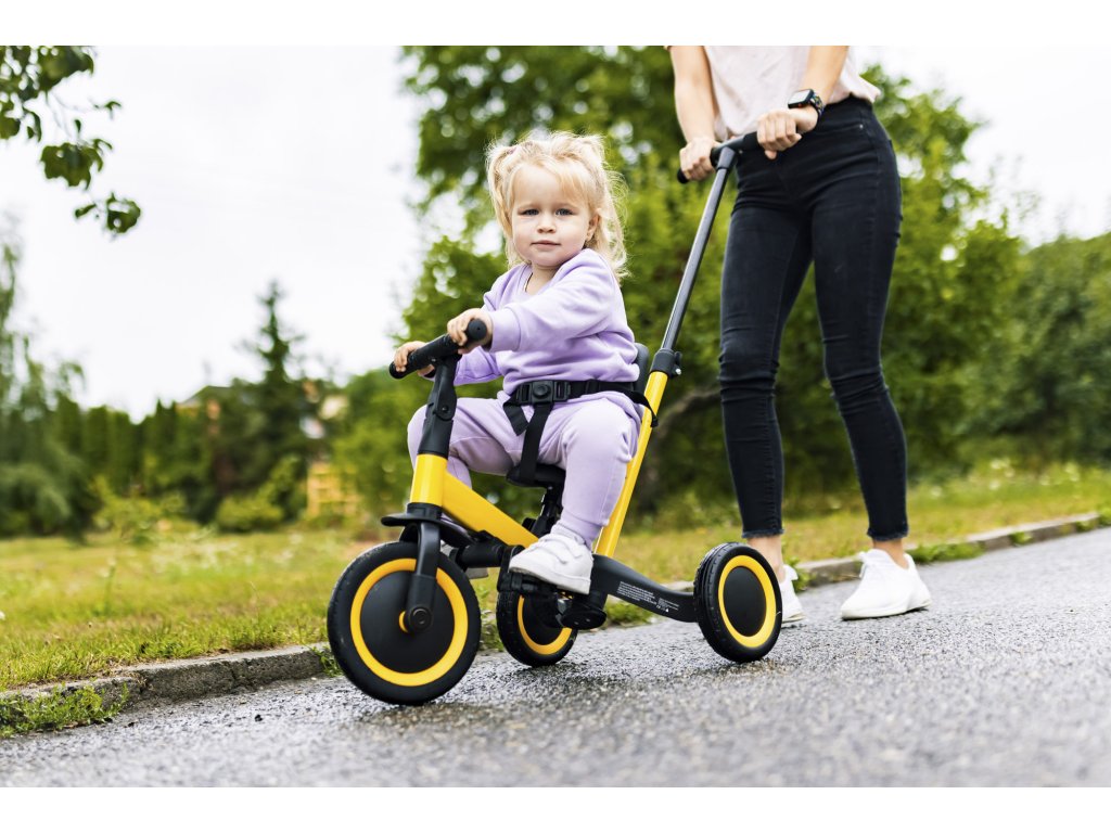 Děti si vybudují vztah ke všemu, co je provází od brzkého dětství. Dopřejte jim dlouhá léta s jedním kolem, které je bude provázet již od 1,5 roku jako tříkolka až do věku 5 let jako kolo. Tříkolka má možnost volby používání s vodicí tyčí či bez vodící tyče. Variantu s vodící tyčí oceníte na delších výletech, když dítěti dojdou síly samostatně šlapat.